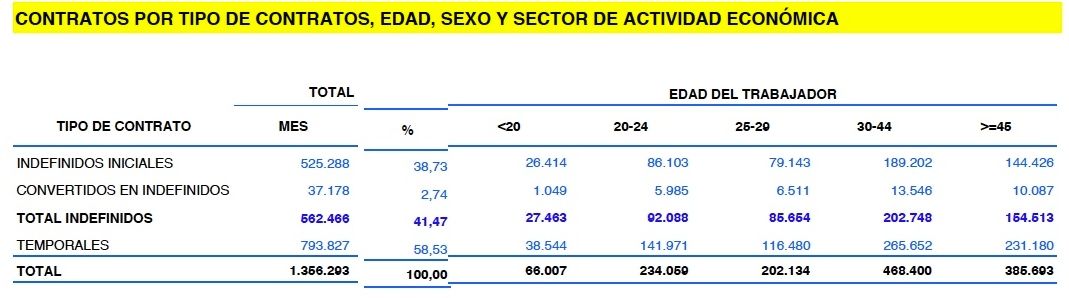 En consecuencia, la suma de los contratos fijos de los más jóvenes es casi el doble que la lograda por los sénior.