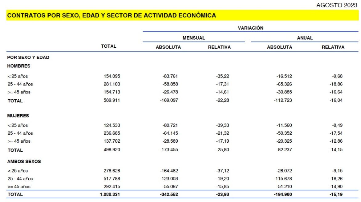 De hecho, en agosto, los trabajadores de 25-44 años lograron 517.788 contratos, lo que significa casi el doble de empleo sénior, a tenor de las estadísticas del SEPE.