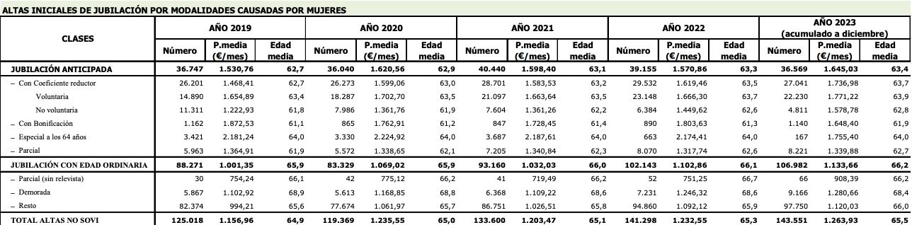 Sin embargo, en el caso de las mujeres, la edad efectiva de jubilación se situó en una media de 65,5 años en 2023, por encima de los 65,3 años de 2022. Las mujeres llegaron ya en 2019 a una edad real de jubilación de 65 años y han ido subiéndola progresivamente hasta alcanzar los 65,5 años en 2023.