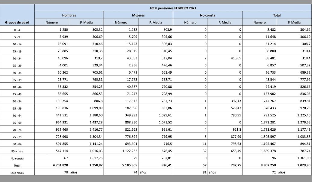 Por lo tanto, a la vista de las estadísticas oficiales, la brecha de género en el conjunto de las pensiones ha crecido respecto a hace un año, tanto considerando todas las clases de pensiones (438,37 euros de distancia hoy frente a 424,46 hace un año, es decir, casi 14 euros), como en las pagas específicas de jubilación (brecha actual de 467,15 euros respecto a 454,98 existentes en febrero de 2021, esto es, 12 euros).
