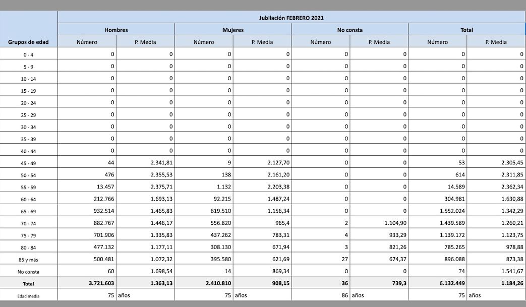 PENSIONES DE JUBILACIÓN FEBRERO 2021