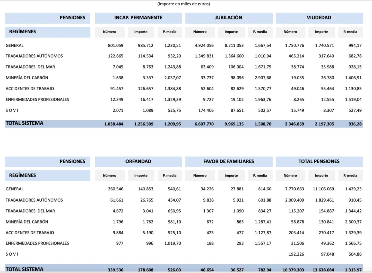 PENSIONES CONTRIBUTIVAS (Nº, IMPORTE Y GASTO) SEPT. 2025