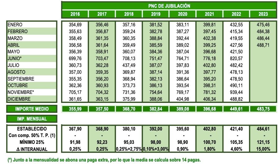 CUANTÍA PENSIONES NO CONTRIBUTIVAS DE JUBILACIÓN (ABRIL 2023)