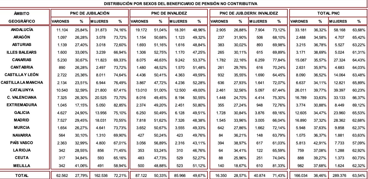 NÓMINA DE LAS PENSIONES NO CONTRIBUTIVAS (MARZO 2024)