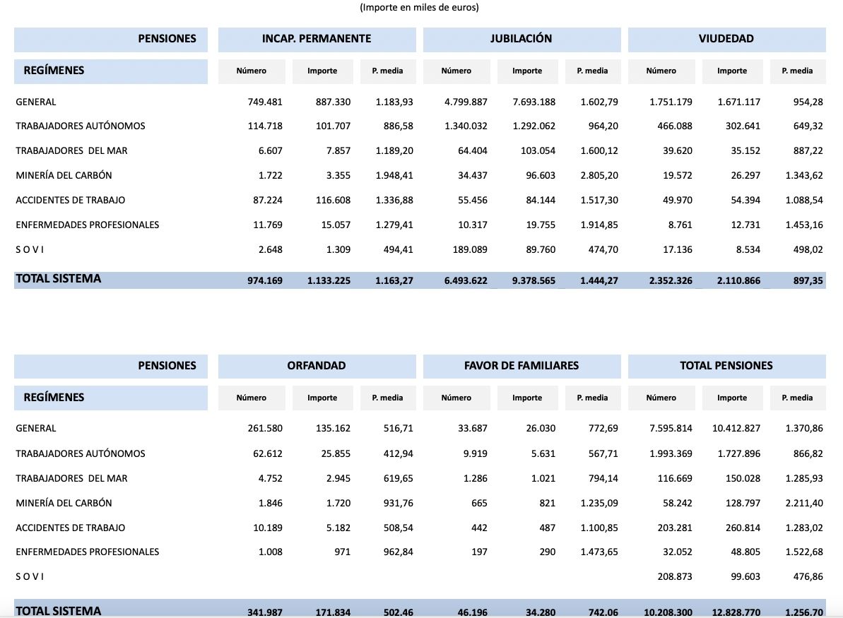 Del total de 10.208.300 pensiones contributivas abonadas en agosto (el 1,4% más que hace un año), a más de 9,23 millones de pensionistas (el 1,3% más interanual), 6,5 millones de pagas son de jubilación; 2,4 millones, pensiones de viudedad; 974.169 de incapacidad permanente; 341.987 pensiones de orfandad, y 46.196, en favor de familiares.